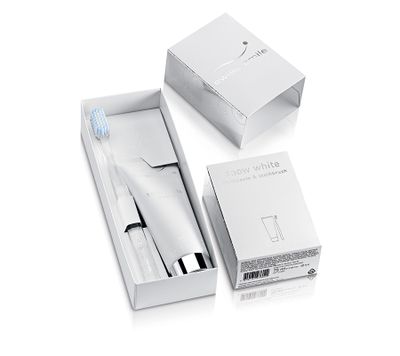 Набор, состоящий из отбеливающей зубной пасты Snow White и отбеливающей зубной щетки.