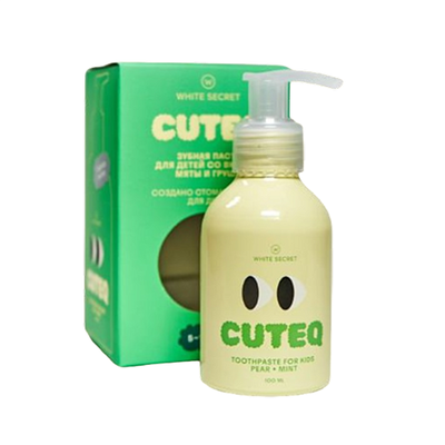 White Secret Cuteq – инновационная детская зубная паста со вкусом сочной груши и освежающей мяты, разработанная ведущими стоматологами для детей 5-12 лет. Это первая в России детская паста с ферментным комплексом, обеспечивающая комплексную защиту полости рта и укрепление эмали.